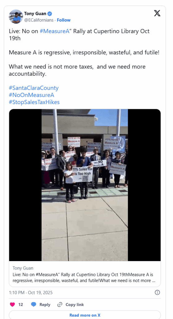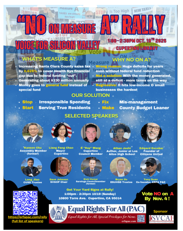 The Equal Rights for All PAC, with co-hosting organizations held a huge non-partisan “No on Measure A” Rally at Cupertino Library Oct 19th 2025!