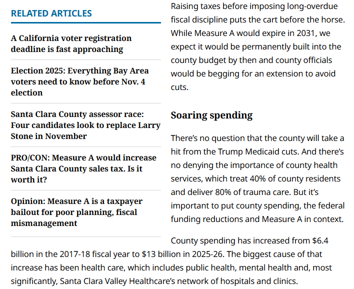 The only reason Santa Clara County leaders were able so quickly to place the sales tax measure on the same ballot as Proposition 50, the statewide redistricting measure, is that they had been working on the tax increase for two years, long before Trump’s return to office.