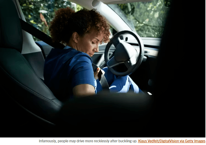 For example, some vehicle drivers take more risks when they are buckled up in a shoulder-and-lap belt. Some construction workers step closer to the edge of the roof because they are hooked to a fall-protection rope. Some parents of young children take less care with medicine bottles that are “childproof” and thus difficult to open.