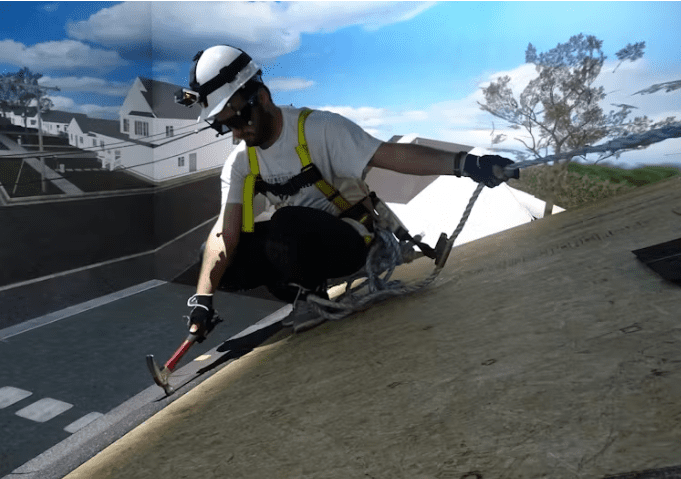 Inside a mixed-virtual reality world, roofers performed tasks that are normal parts of their job. Jesus M. de la Garza, CC BY-ND