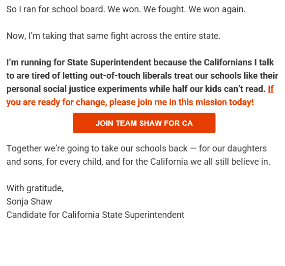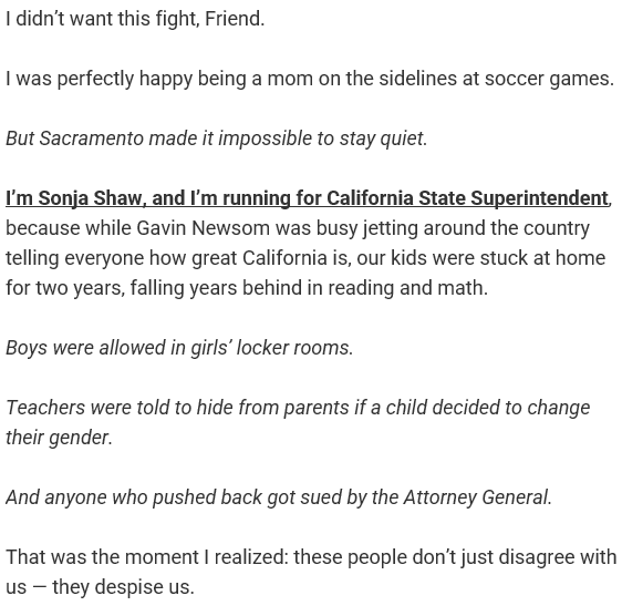 Sonja Shaw Mom. Fighter. Candidate for State Superintendent.